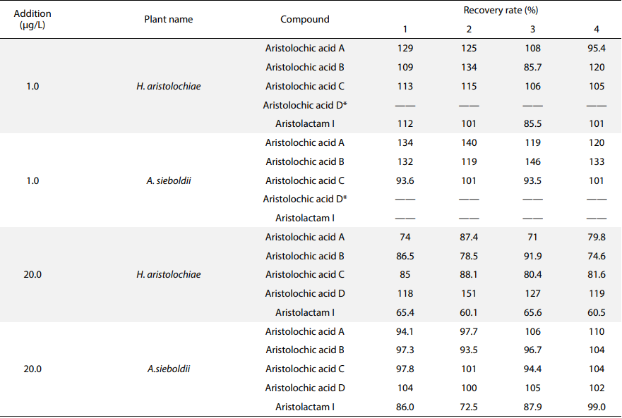 Aristolochic acid, which is the target of this analysis, is found in plants of the genus Aristolochia, and is classified as a carcinogen, including their plant forms. This article introduces an internal standard method using naproxen for rapid screening and quantitative analysis of four types of aristolochic acid contained in Aristolochia debilis and Asiasarum sieboldii and aristolactam I, which is one of its metabolites, using the Shimadzu DPiMS-8060 direct probe ionization mass spectrometer kit.